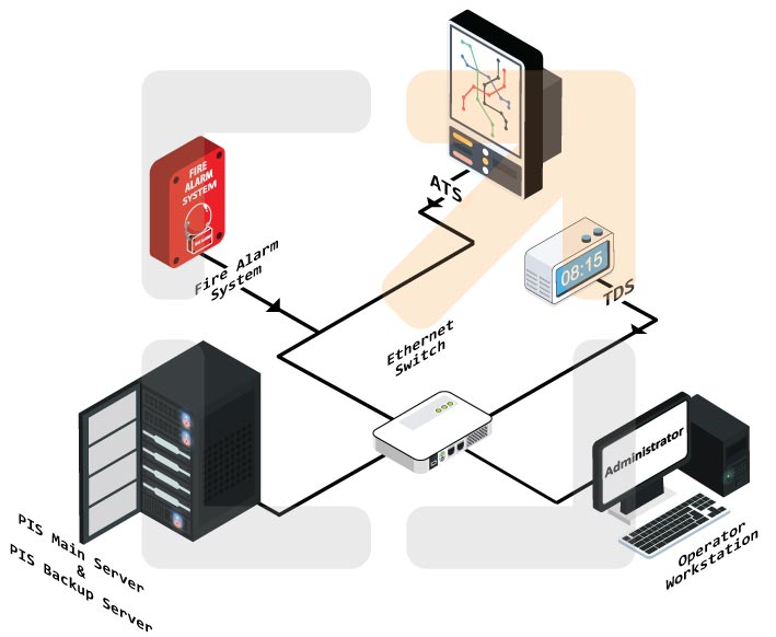 سامانه PIS فرابین قادر به ارتباط با سامانه های سیگنالینگ،ساعت مرکزی و سامانه اعلان حریق می باشد.